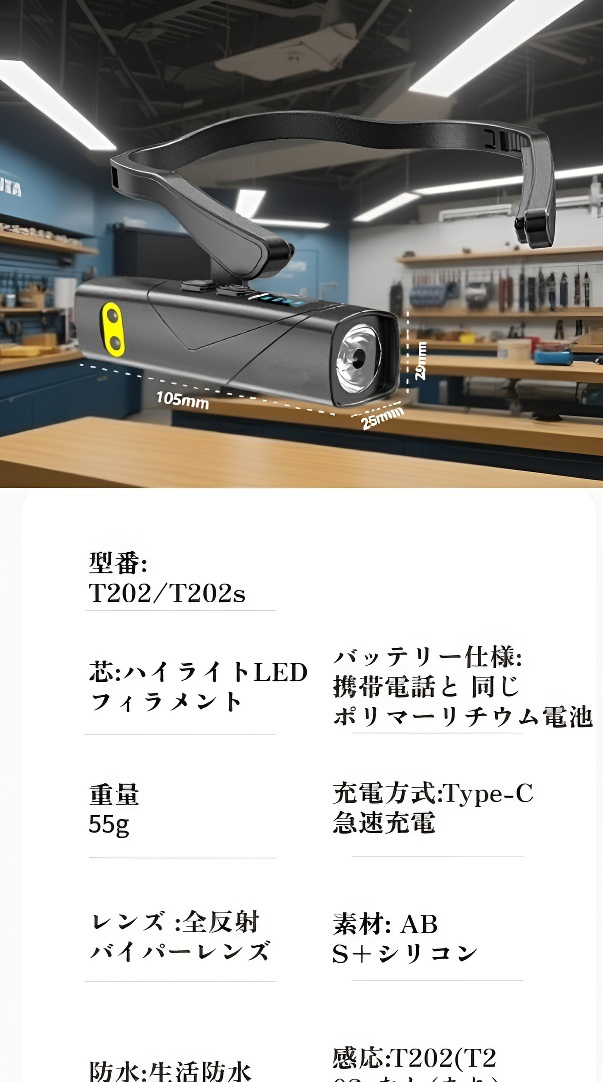 軽量型ヘッドバンド照明ライト 超長時間稼働 センサー付きヘッドランプ